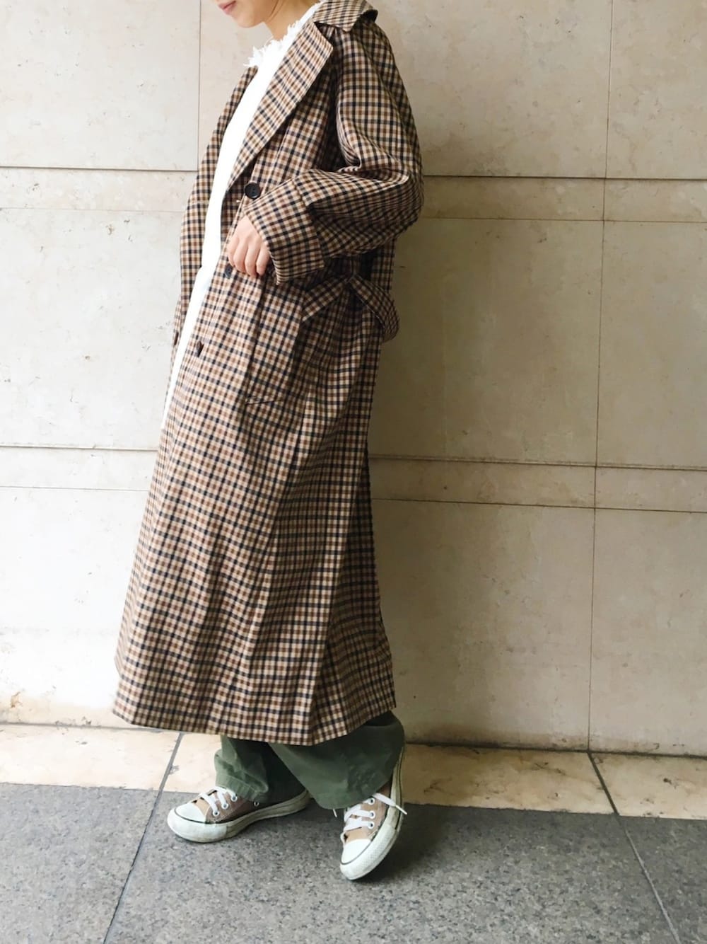 mihnaのトレンチコート「チェック柄トレンチコート」を使ったコーディネート