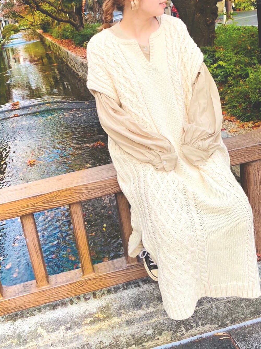 ミホのワンピース「ケーブルビックスリーブニットベストワンピース」を使ったコーディネート