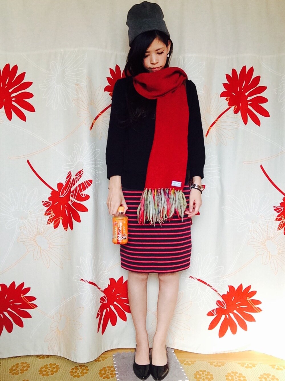 ほうじ茶でぽっかぽか。 見えないですがリュックとプレッシャー 背負ってます( ˊଳˋ)