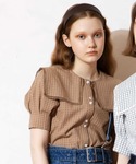 miのシャツ/ブラウス「チェックはしごレースカラータックスリーブブラウス」を使ったコーディネート