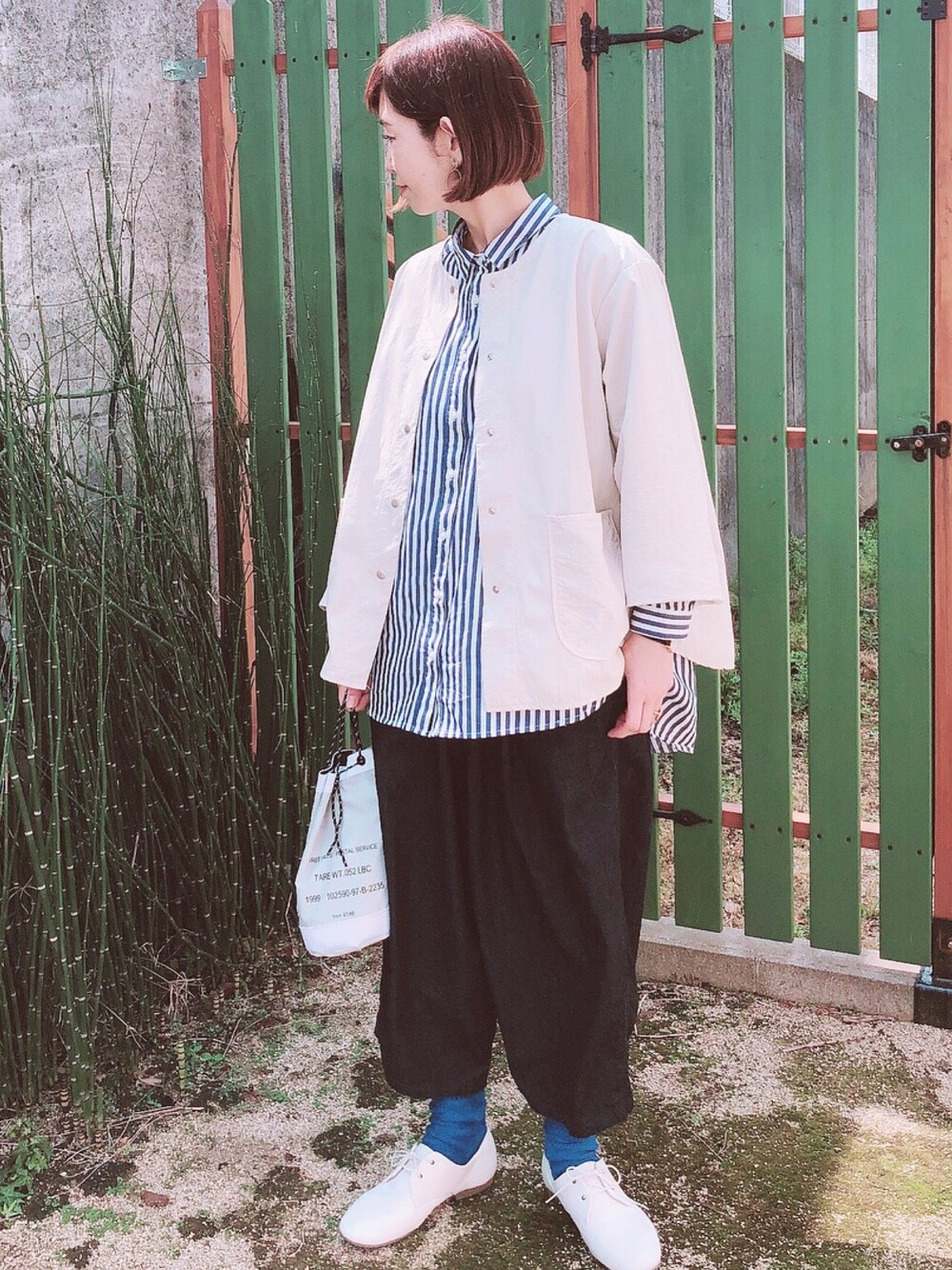 ストライプシャツは白アイテムを多めにすると引き立つ感じ➰💕