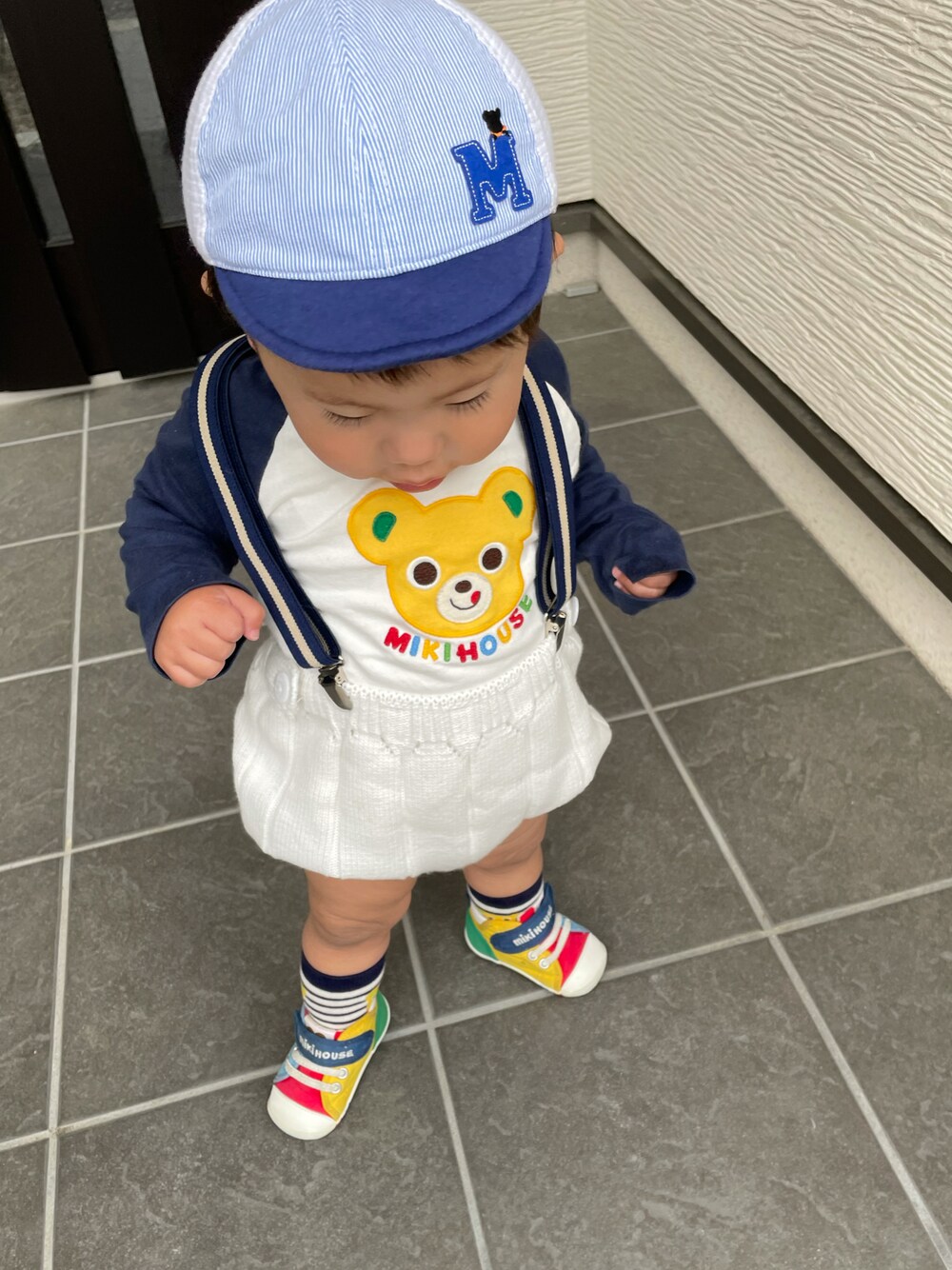 miho(ミキハウスZOZOTOWN店)のベビーシューズ/ベビーソックス「【要セール設定】mロゴ ファーストベビーシューズ」を使ったコーディネート