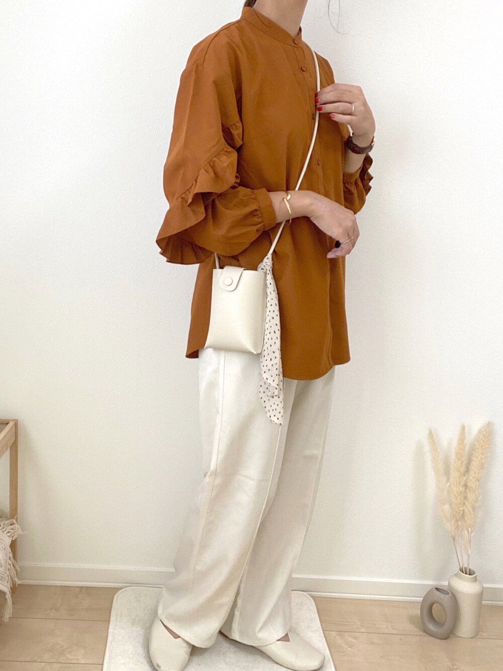 GUのブラウス色味か可愛すぎる🧡 2色でまとめたシンプルなコーデ♡ Instagramで詳しく紹介しています☺️🤎