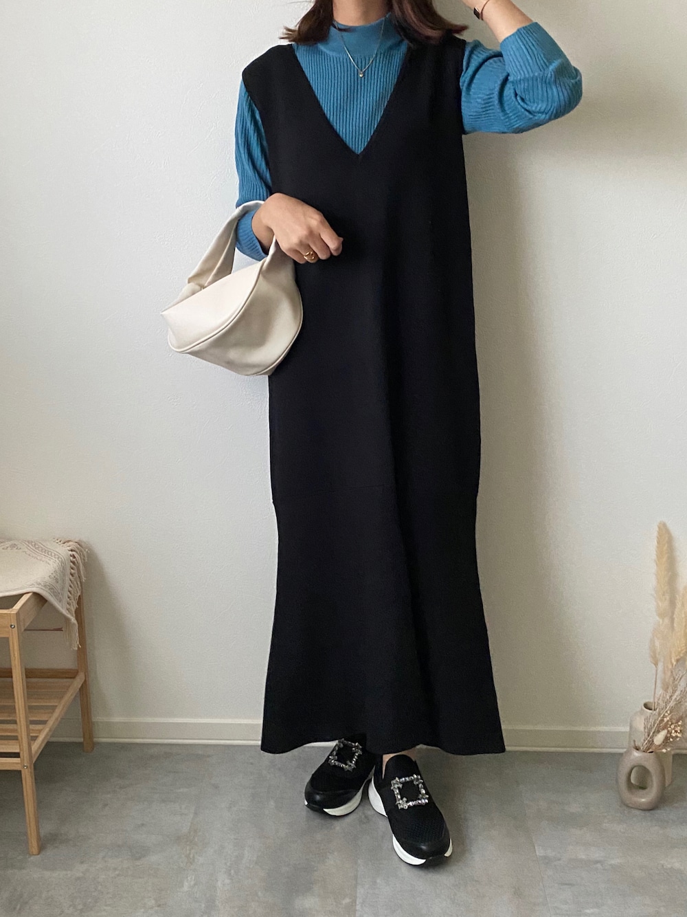 ブルーの色味が可愛い💙 プチハイネック使いやすくて可愛いです〜🥺✨