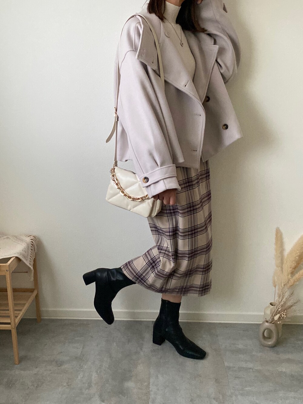 みゆきちのその他アウター「スタンドカラーショートコート」を使ったコーディネート