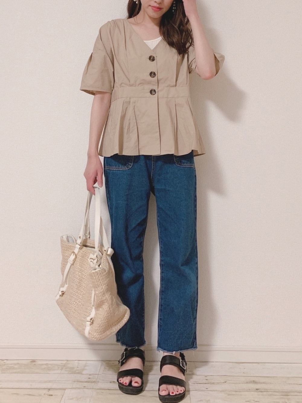 6.12 mysticのペプラムブラウス ピンクと迷ったけど、 合わせやすさでベージュに🧸 今季のmysticかわいいな〜〜♡