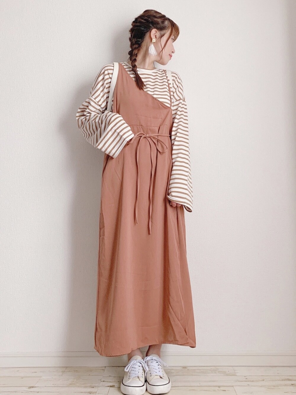 見ていただきありがとうございます♡ おひさしぶりです☺︎ 旅行から2日前に帰ってきました✈️ 温泉入ったり、旦那の親戚の方に逢えたり、 台風もなかったので、天気も良くて☀️ 気温も26〜28度でちょうど良かったです😊 旅行のコーディネートは、 お気に入りを詰め込んだブラウンコーデ🧸 お気に入りのワンショルワンピと ゆるゆるボーダートップス♡♡ アウターはアプレジュールの マンパが活躍しました!