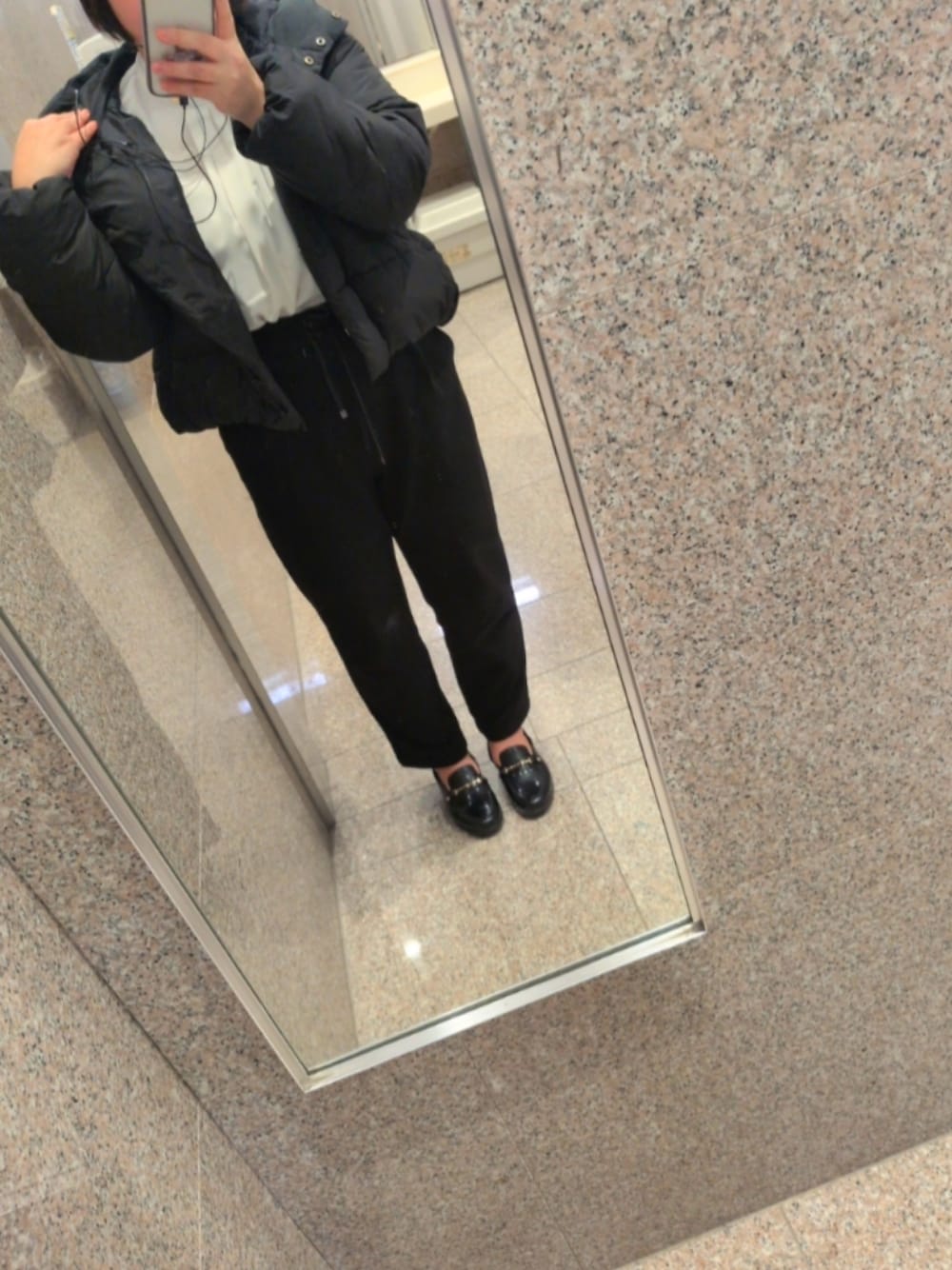 雨の日は黒でまとめがち。 迷わなくて楽やし、きちんと見えるから◎ 白トップスで少しだけ軽さを。 気分が上がらない日もあるけど、 ちゃんと出勤できたらそれで合格💮 同じように頑張ってる人、今日もおつかれさま。