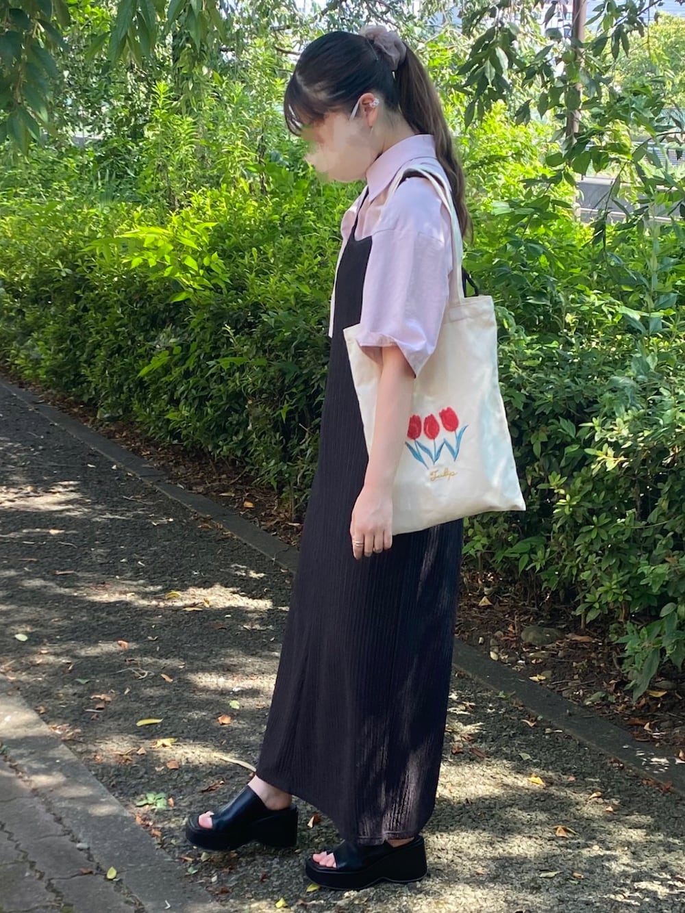 このGUのピンクシャツの色味が絶妙すぎて大好き🤦♀️💞 激安雑貨屋さんで300円以内でGETしたバックもかわいくてお気に入り🌷