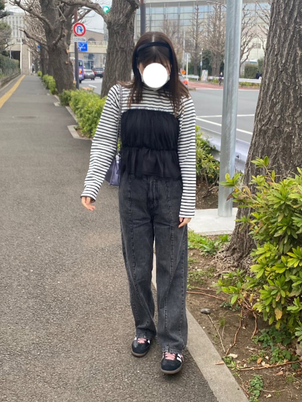 今年流行りのチュールが使われたトップスがかわいい.ᐟ.ᐟ モノクロコーデに小物で差し色をいれて、組むのがすきです☁️🎶