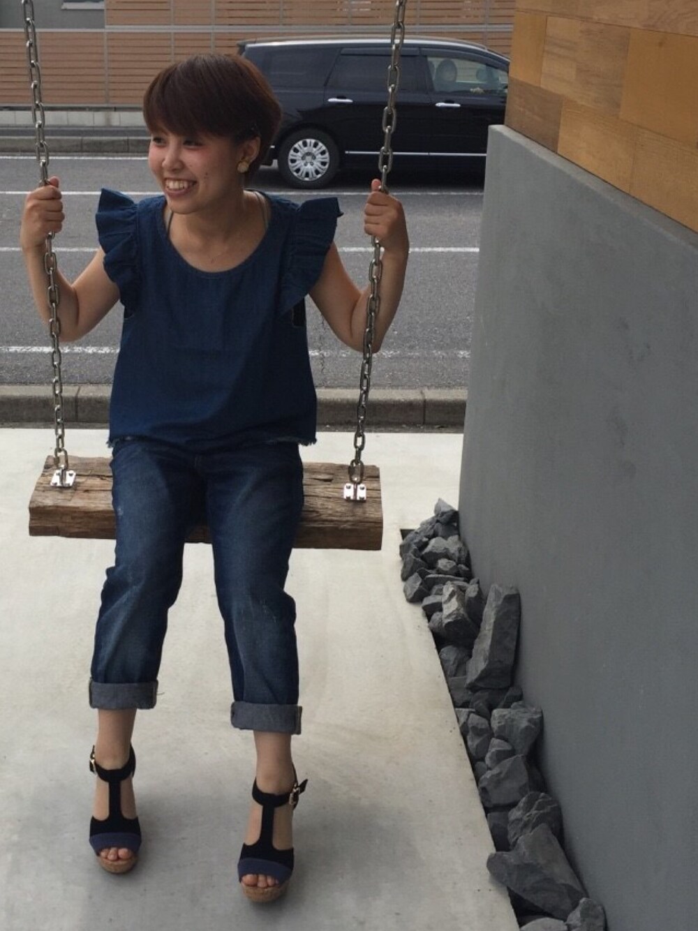 念願のデニム on デニム( ॣ ö ॣ)💓 このサンダル! 歩きやすくて疲れない◎