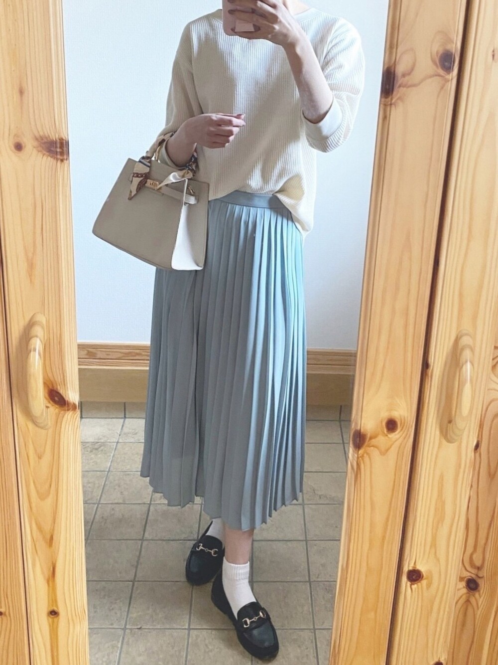 mint tea🦢🍃のスカート「プリーツロングスカート(丈短め75~79cm)」を使ったコーディネート
