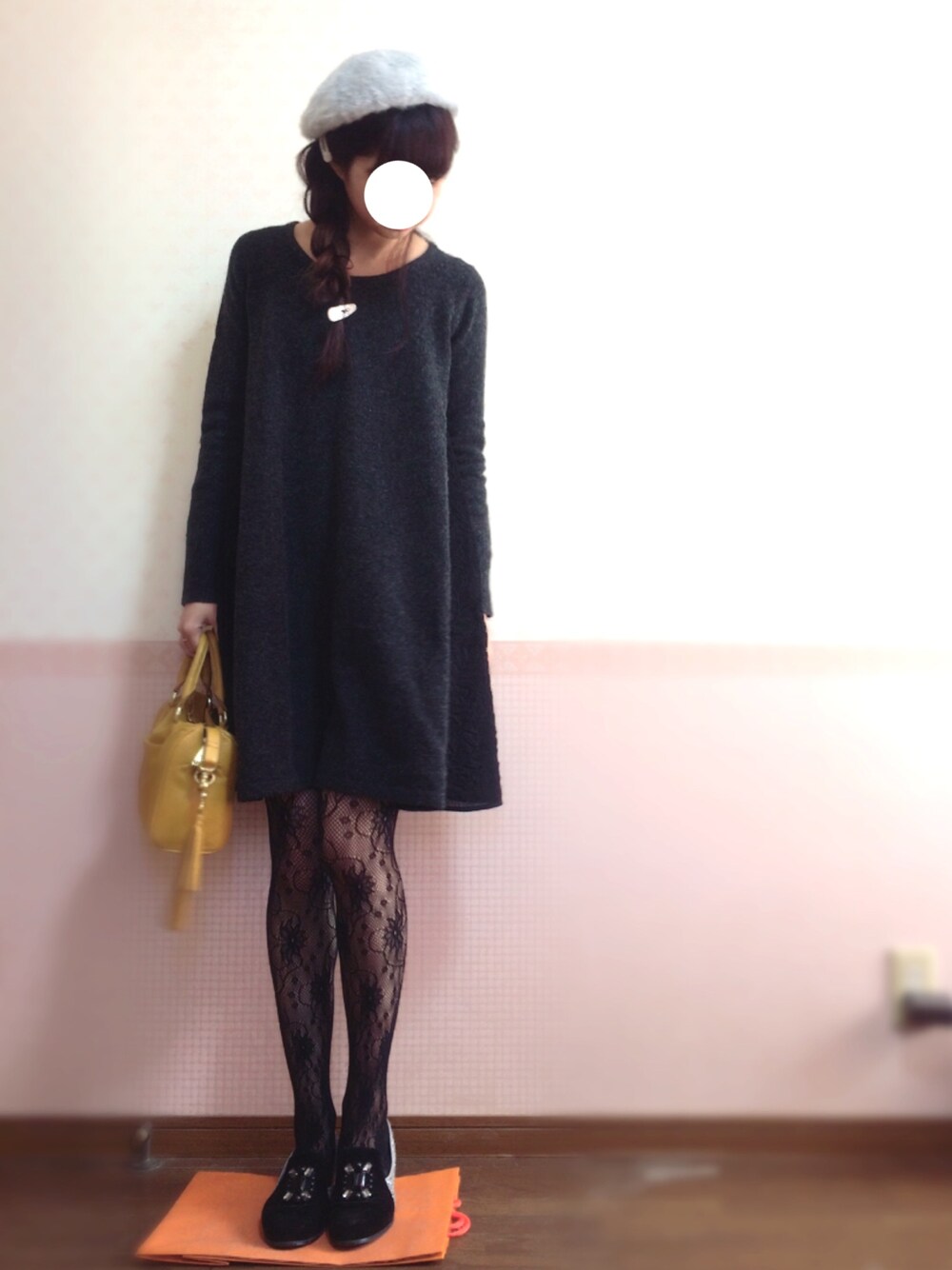 いつもセーブ、いいね、ありがとうございます✨ ビアズリーのお気に入りのワンピースで今日もモノトーンと思ったけど鞄でアクセント。 タイツは今季のイネス×ユニクロ。 ヘアは斜めに編み込んで行って、白ピンクのマーブルのスリーピンをとめました✨