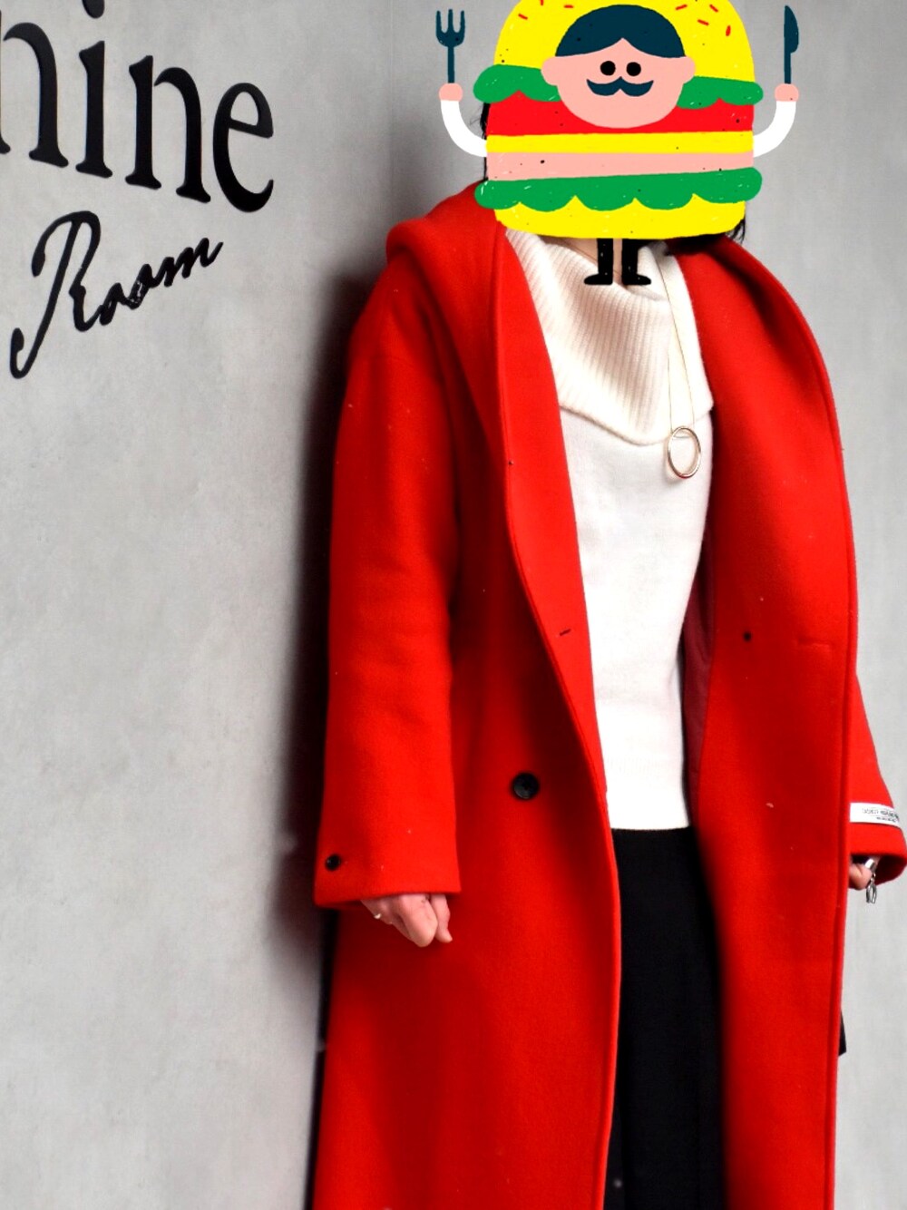 一目惚れした赤いコートを着て。