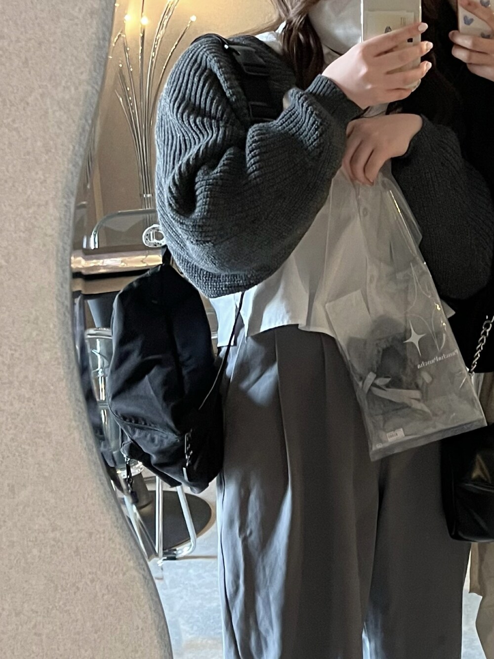 かばんは多分雑誌の付録です:) 結構入るのでお気に入りです〜🎶 ボレロニットは着る勇気が出なくてずっと家に置いてたんですが、やっと昨日着れました!