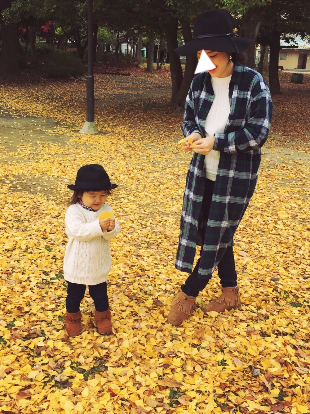公園にお散歩に行った時のものです🍂◡̈ この日も銀杏がとっても綺麗で、いつも通りワシャワシャして遊びました♩笑 黒のハット✖︎ケーブルニット✖︎デニム✖︎ブーツ(見えにくいけどチェックシャツも。笑)の親子コーデ&マタニティコーデです♡ 母ちゃんお腹が大きくなってきたから、そろそろこのケーブルニットがキツくなってきた…◟̽◞̽ 💦 先日の病院での出来事に優しいお言葉をくれた方々、本当にありがとうございました♡(´・ー・̥`) おかげで母ちゃん元気出ました‼︎♡ 息子くんの微妙な風邪もあと少しってところです◡̈⃝♩ 相変わらず元気で動きたがってます(笑)