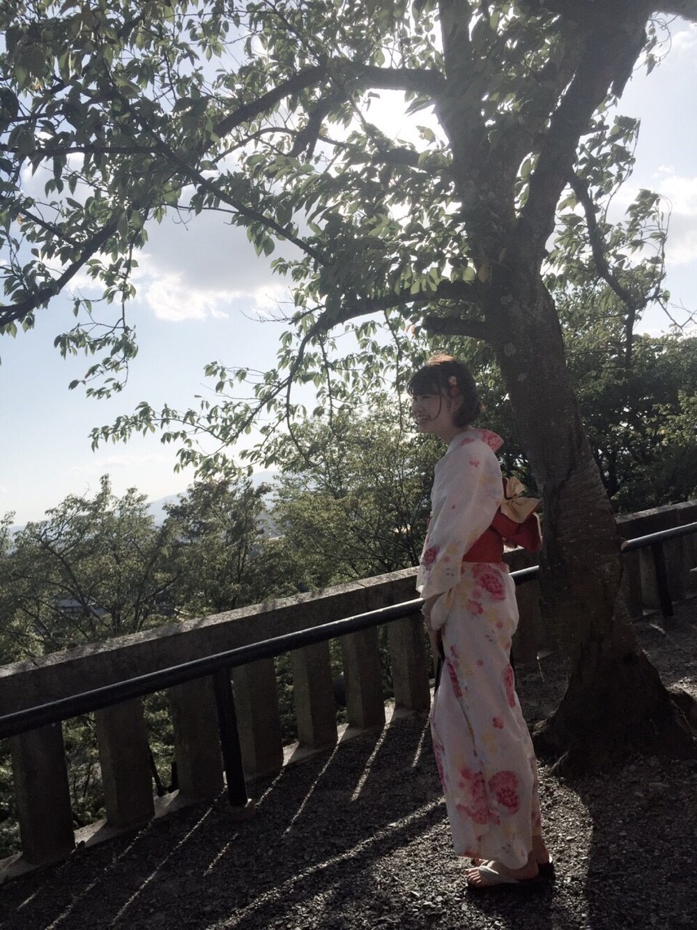 ホワイト系の浴衣を着用したレディースの秋コーディネートの1枚目の写真