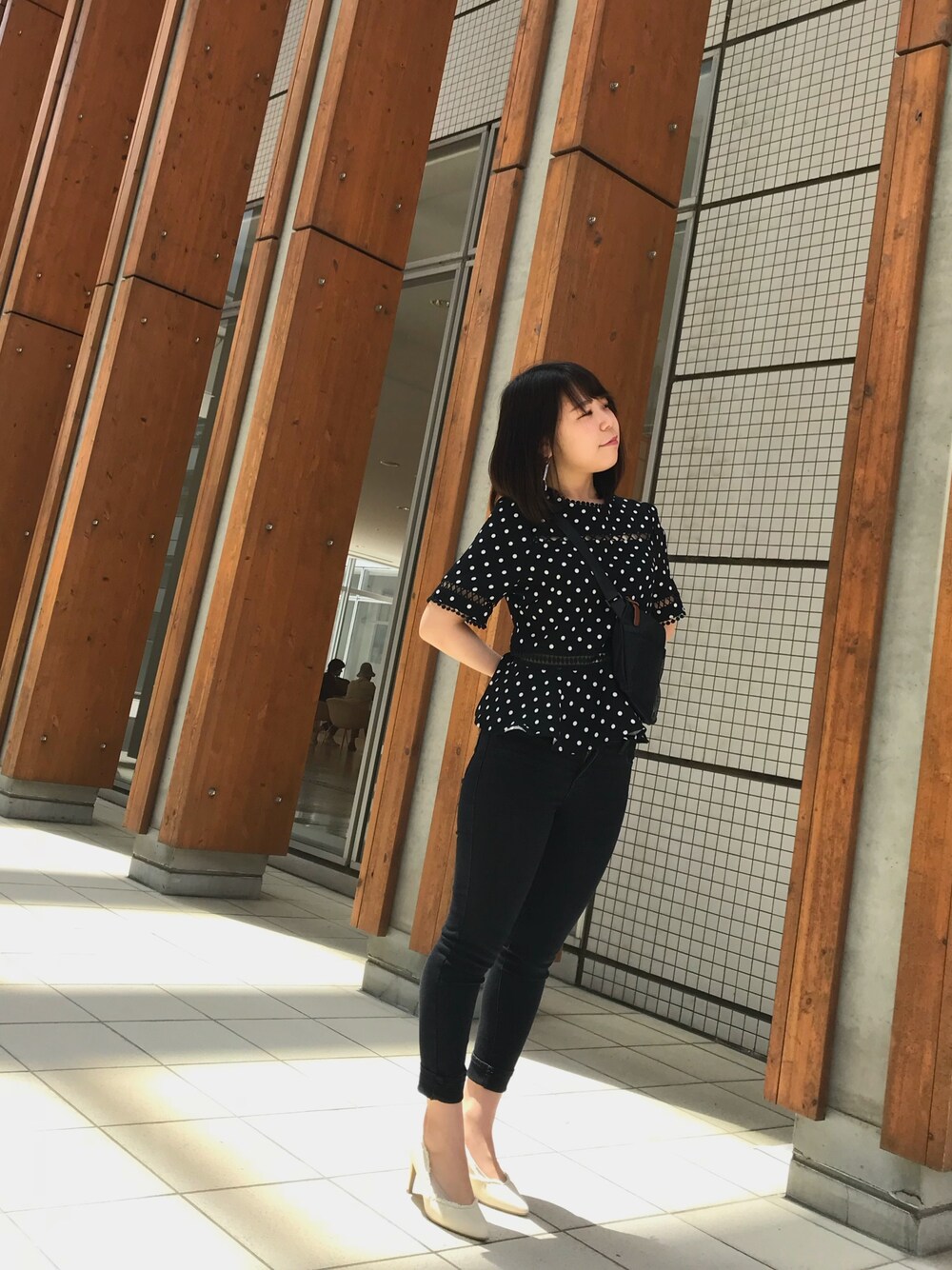 Miのショルダーバッグ「Rename メッシュ ポケット 軽量 ナイロン ミニ サコッシュ ショルダーバッグ」を使ったコーディネート