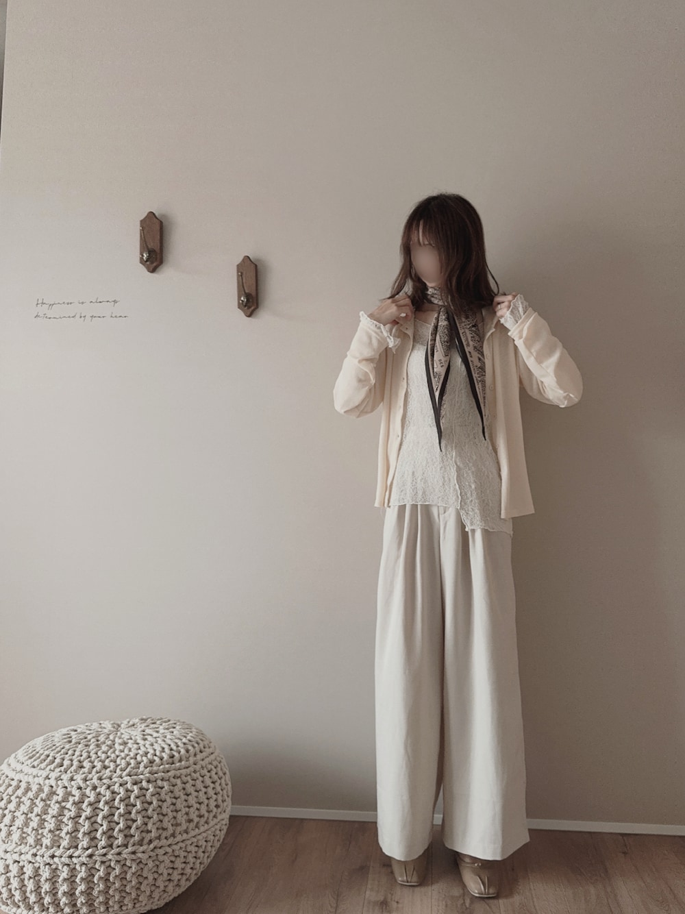 5/24しまむらオンライン限定販売のアシンメトリーレースpo ivoryでootd.