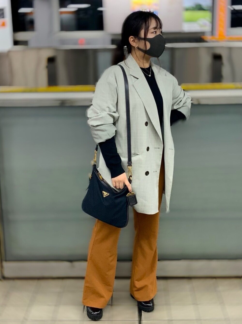 Bershkaのパンツかわいい! ヒール履くと丈感がぴったりでした🙆♀️ GUのジャケットはセールだった👗