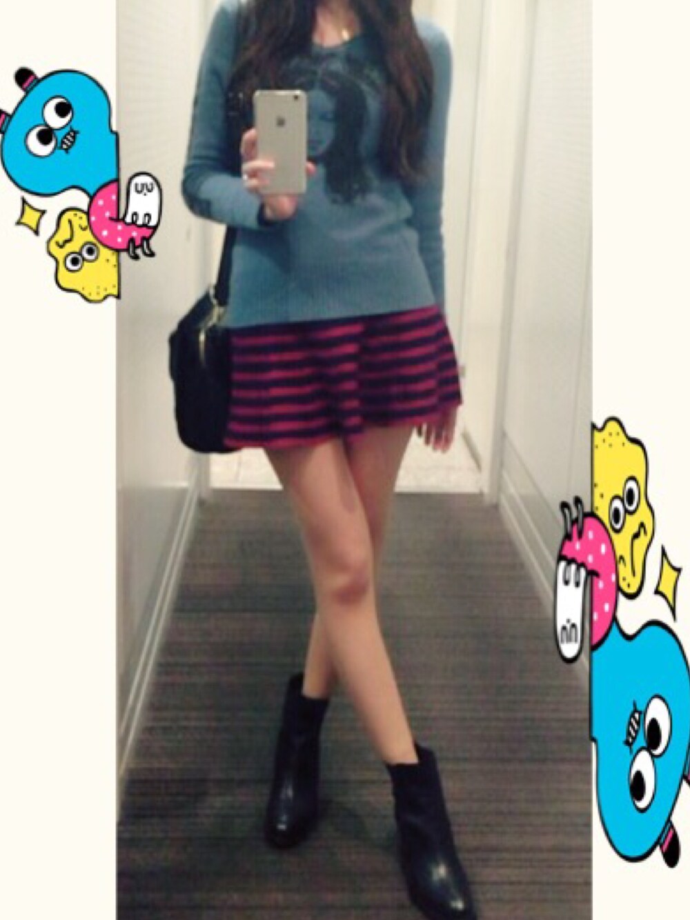 青ニット×赤とネイビーのボーダースカート♪色物を着ると気分が変わりますね。