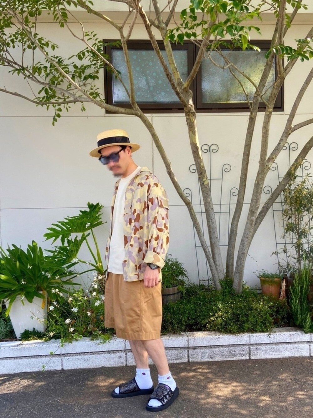 グルカショーツ×Used長袖STYLE✨ 同系色でまとめてみました。 朝活、パン屋へ。 長袖でも、少しでも夏っぽく🌴