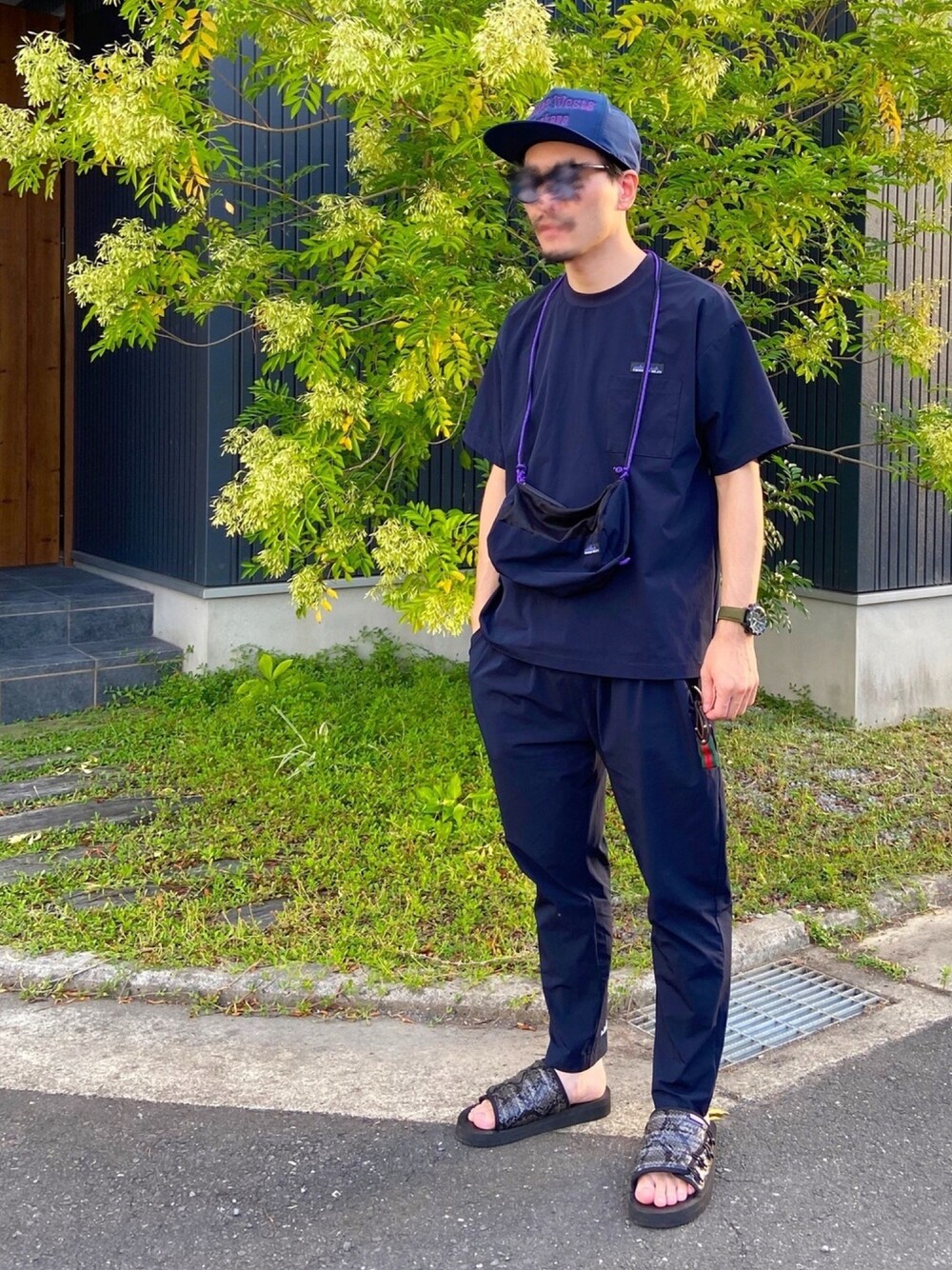 ネイビー×パープルSTYLE✨ セットアップで、リラックススタイルで お墓参りに。 所々に、パープルを💜