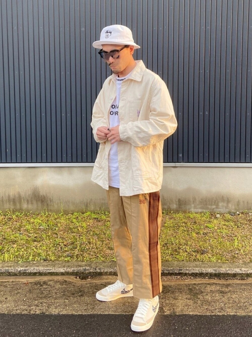 トラックパンツ STYLE✨ ジャージ素材じゃないトラックパンツ。 全体的にカラーリングを合わせました。 スニーカーはcustom AF1は超えられません‼️ なので、ブレーザーをゲットしました🎵