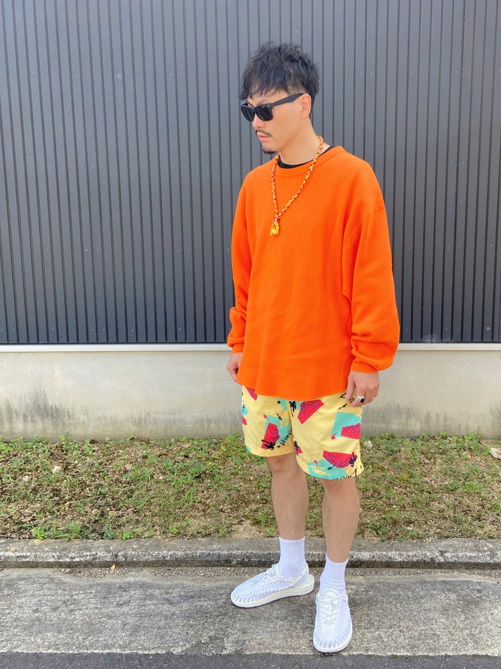 ロンT STYLE×短パン✨ 肌寒かったので、厚手のロンT。 トロピカルな長袖×短パンSTYLEです。