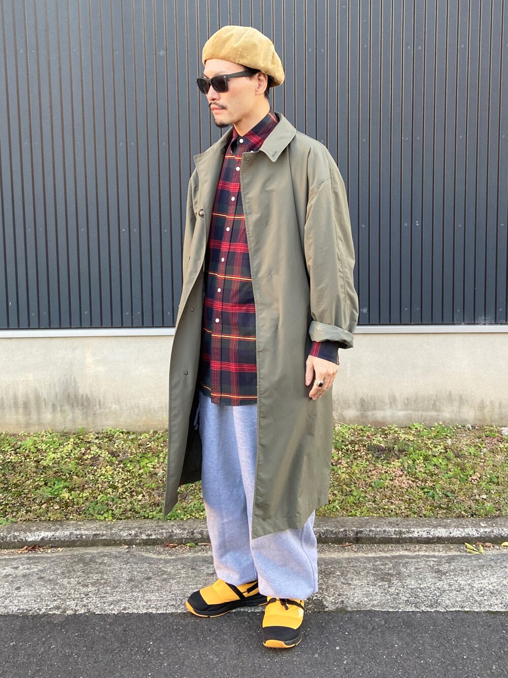 コート×スウェットパンツSTYLE✨ 足元イエローが何気にポイントのつもり。