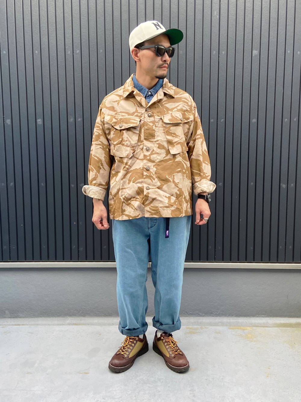 春ミリタリーSTYLE✨ トロピカルコンバットジャケットをメインに。 このカラーリングと、柄なら、春っぽくなります。
