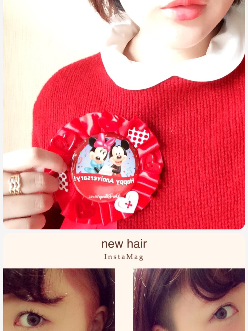 スカートも赤で全身真っ赤❤️ パステルっぽい黄緑とピンクの色いれて 刈り上げました〜〜〜〜!3年ぶりに!