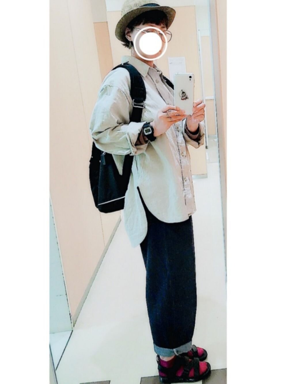 ★ご訪問下さりありがとうございます☆ 鏡の中からこんにちは オーバーサイズシャツにデニム ナチュラルに シンプルに