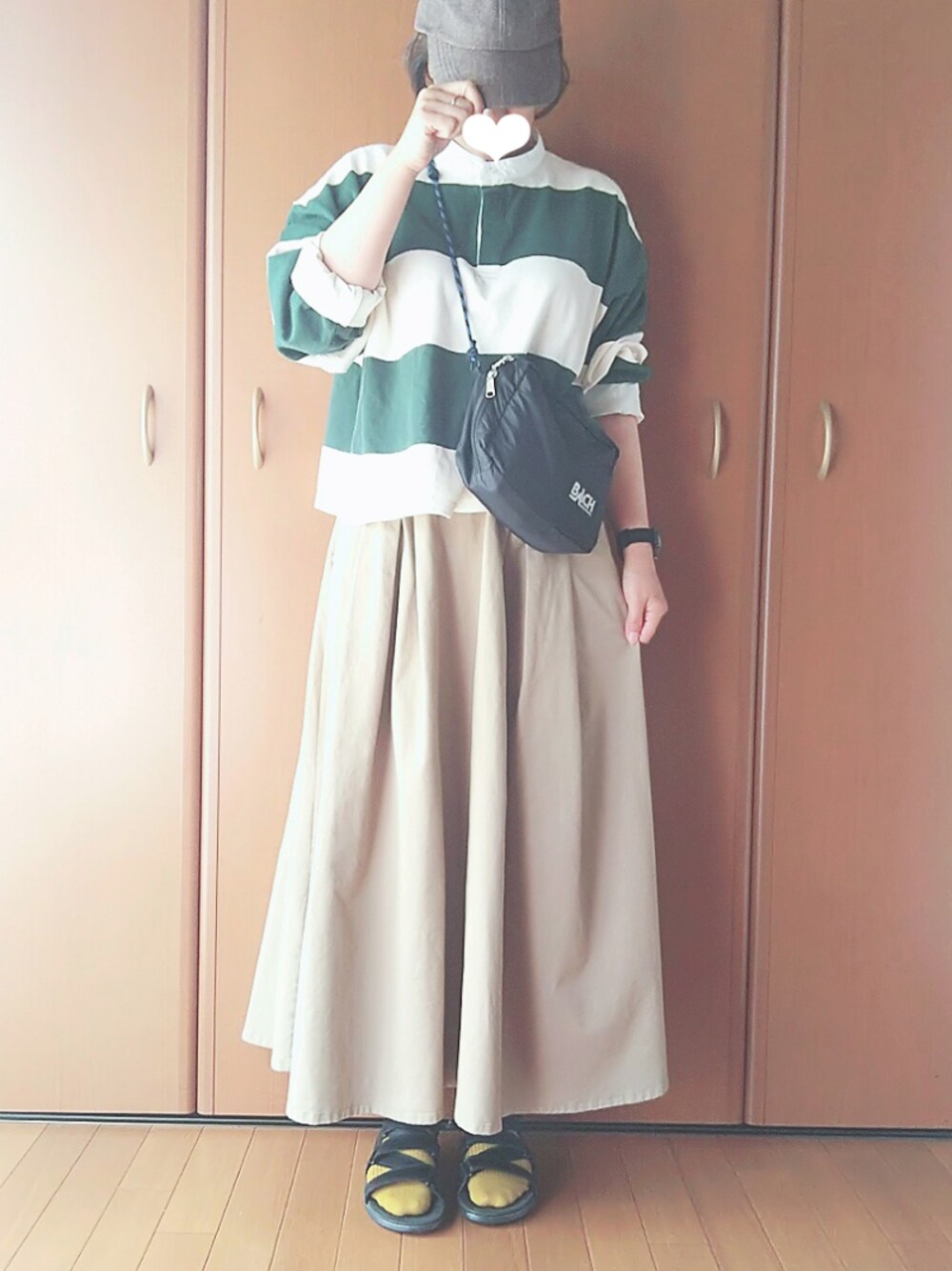 ご覧いただきありがとうございます❋ GW最終日 ちょっと近場を ドライブのコーデ︎︎︎︎☺︎ ラガーシャツにロンスカ合わせてみました☆