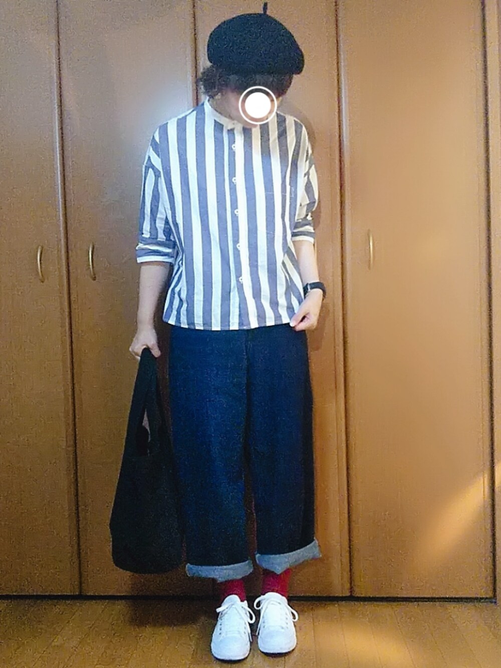 ご覧いただきありがとうございます𓃬 わたしがストライプ着ると LAWSON感。。。 娘のスニーカーをこっそり拝借