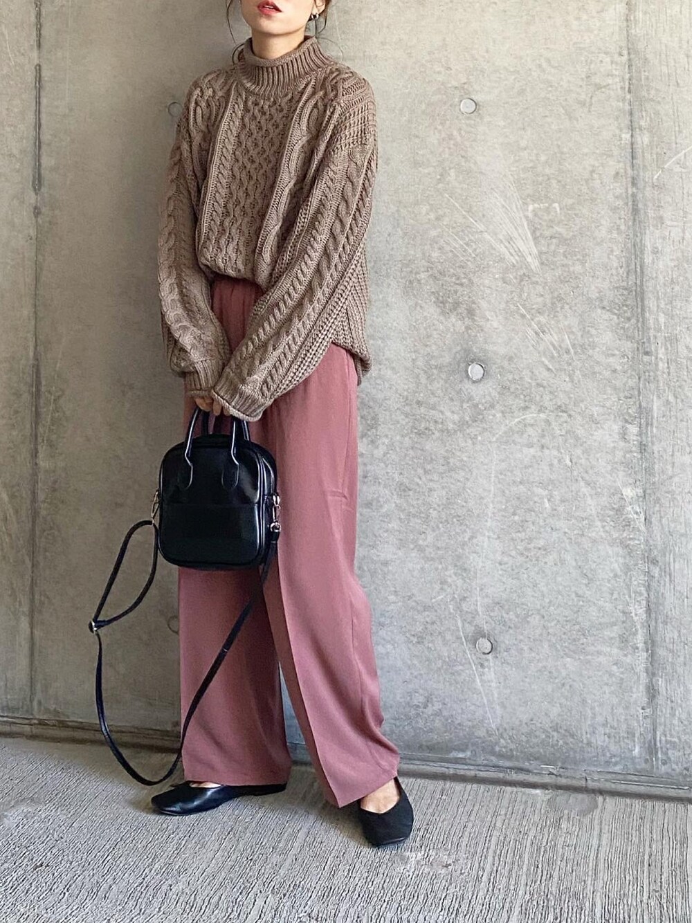mikaのニット/セーター「モックネックケーブルニット」を使ったコーディネート