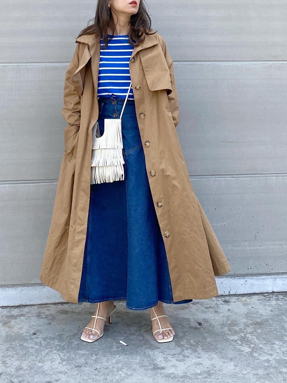 いつかのコーデの アウター有りver… . . @unfield__official ✔︎Bigシルエットトレンチコート . . 何度も登場している トレンチコート🧥 . . 今季1番着ているアウターかも🎶 シルエットがほんっとキレイだし ロング丈もとっても好き💓