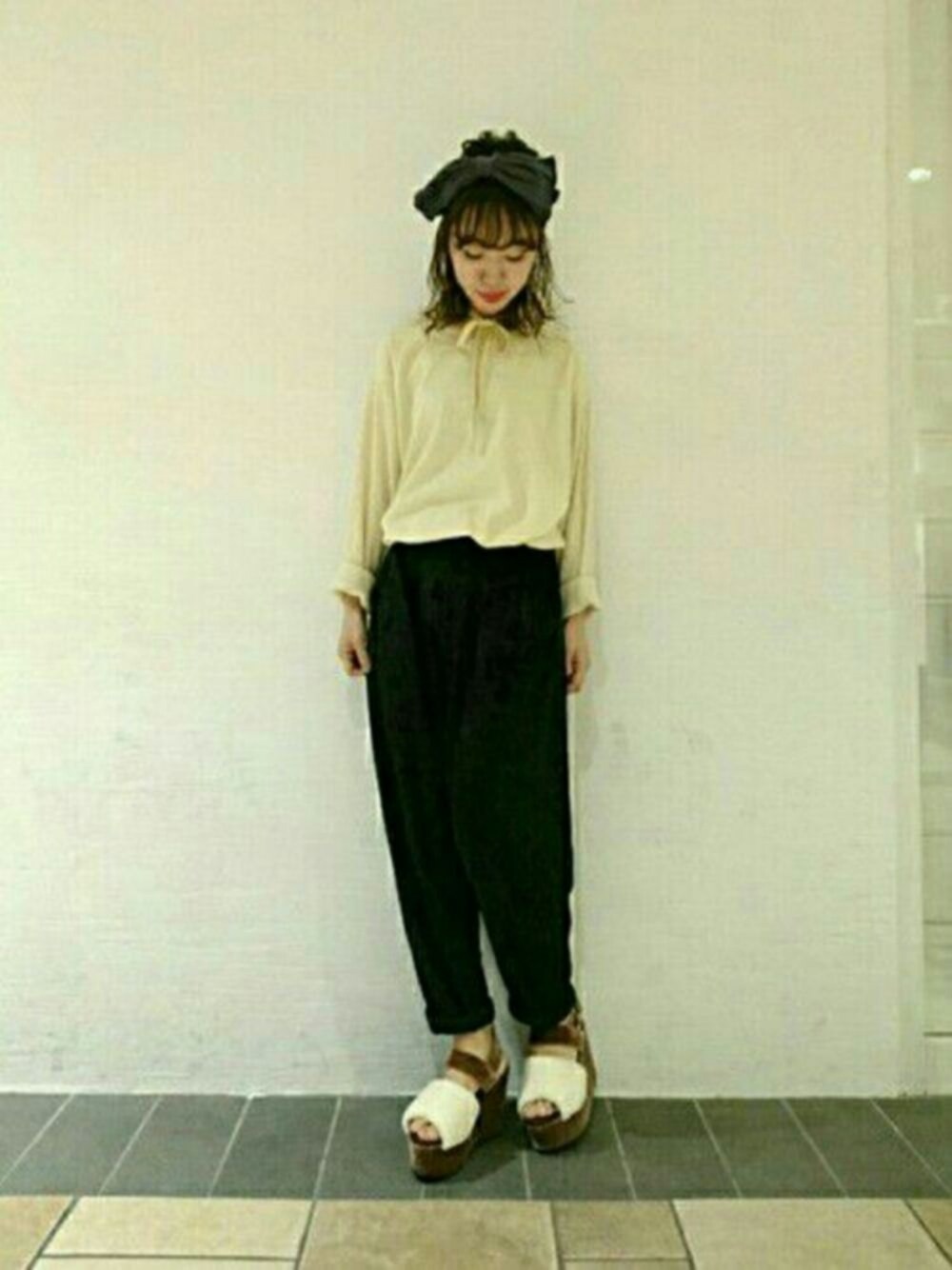 このたまご色のカットソーには チョーカーも付いてるの🎵 ベロアパンツは秋を感じさせる一枚! けど、今から着れちゃうすぐれもの。