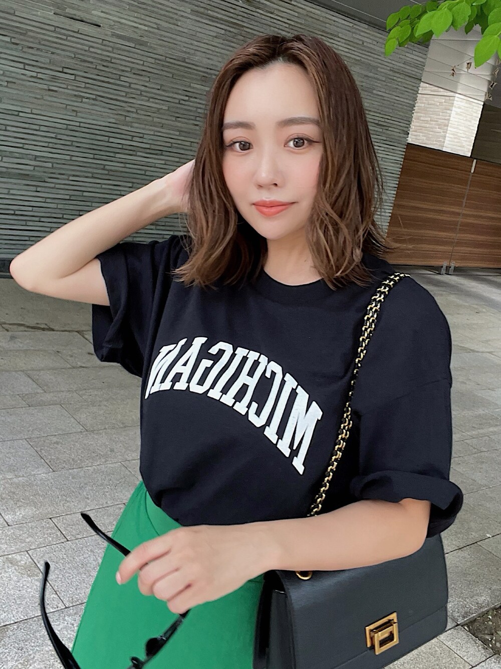 Mika UedaのTシャツ/カットソー「GILDAN カレッジロゴ オーバーサイズ プリント Tシャツ(半袖)」を使ったコーディネート