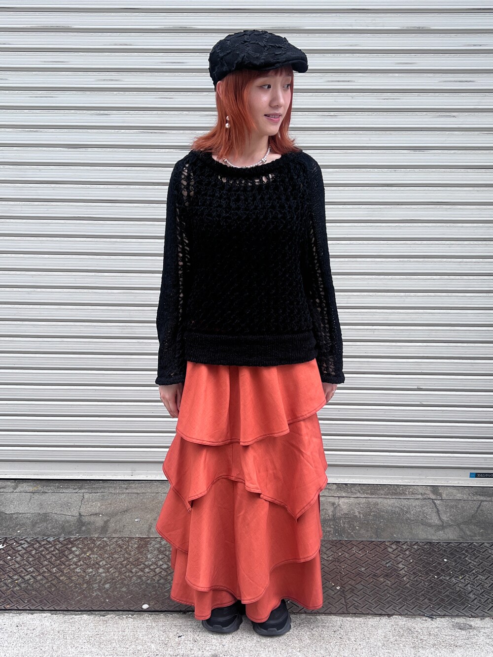 ミカ(OVERRIDE 南堀江)のニット/セーター「チュールヤーンメッシュセーター」を使ったコーディネート