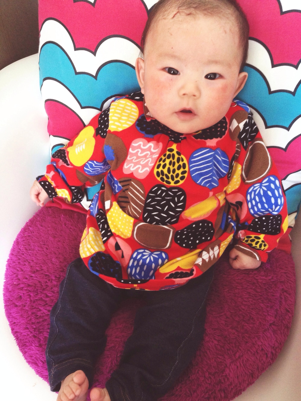 レッド系のその他ベビー用品を着用したキッズの春コーディネートの1枚目の写真