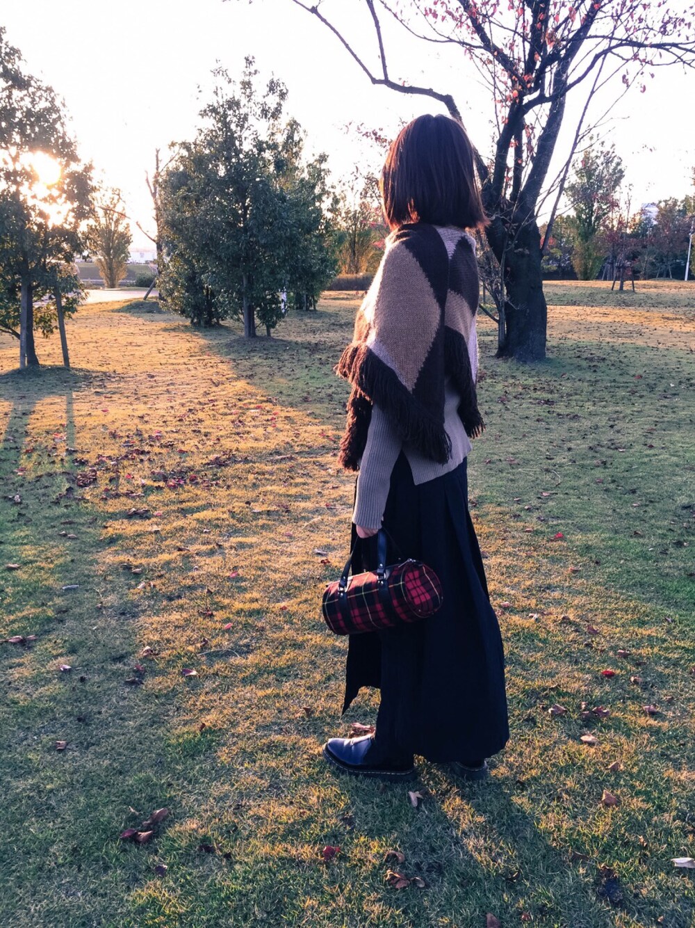 すっかり秋になりました。 今日は、カーキのリブニットと黒のスカートパンツにフリンジが効いたストールを羽織りました。 公園を散歩して、近くのカフェでホットの葡萄ジュースを飲みました。寒い中温かい飲み物を飲むとほっとしますね。