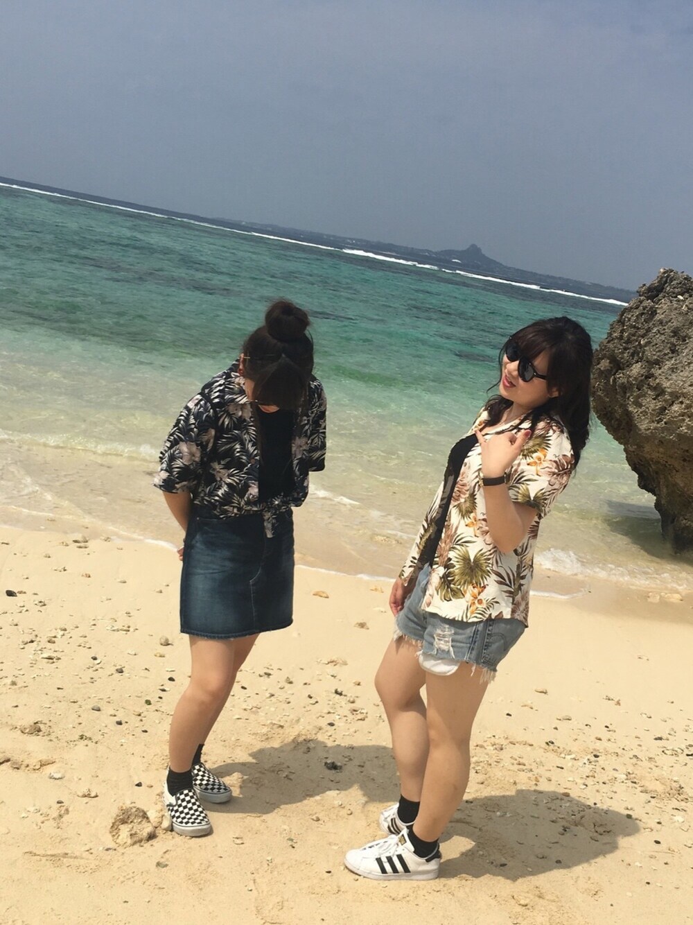 沖縄旅行の一コマ✈️🌺🍺あっちはカラッとした暑さで過ごしやすい、、!色は黒でまとめたけどスカート合わせで女の子らしさも忘れずに😋