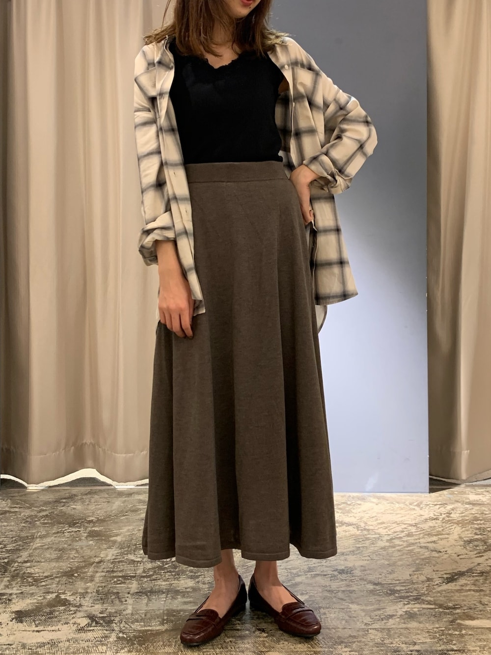 mikaのスカート「フレアAラインニットロングスカート *」を使ったコーディネート
