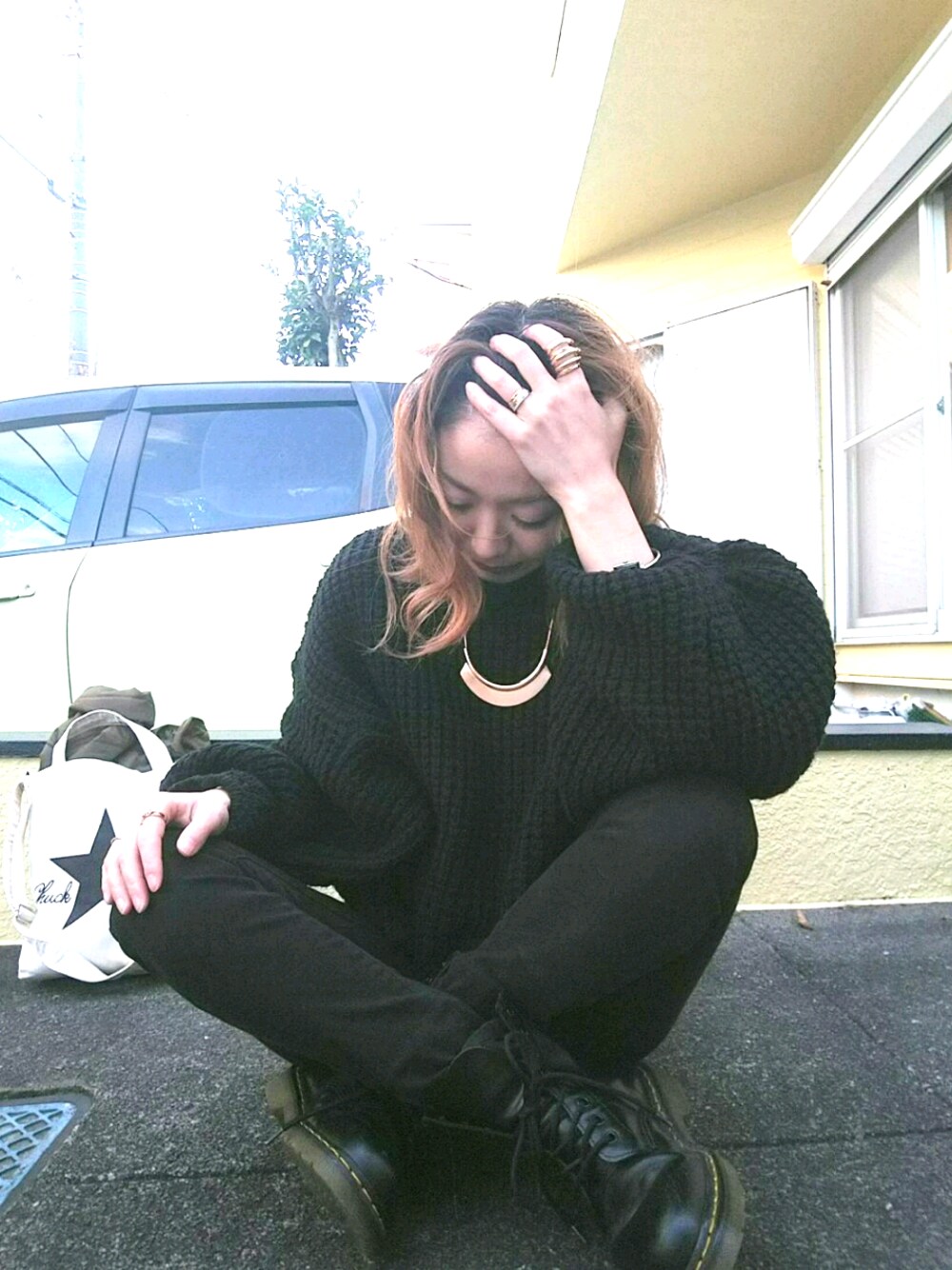 みかすけのニット/セーター「ボリュームスリーブニット」を使ったコーディネート