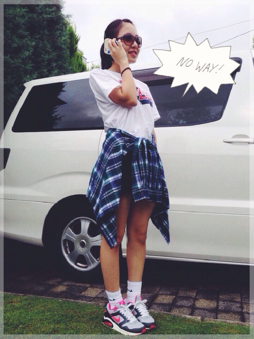 ナイキのソックスとエアマックスで スポーティーに 👟⭐️ オールバックポニーテールと サングラスで海外風を意識.... 👱💖 tops : wego bottoms : wego shirt : wego socks : nike sneaker : nike sunglass : chloe