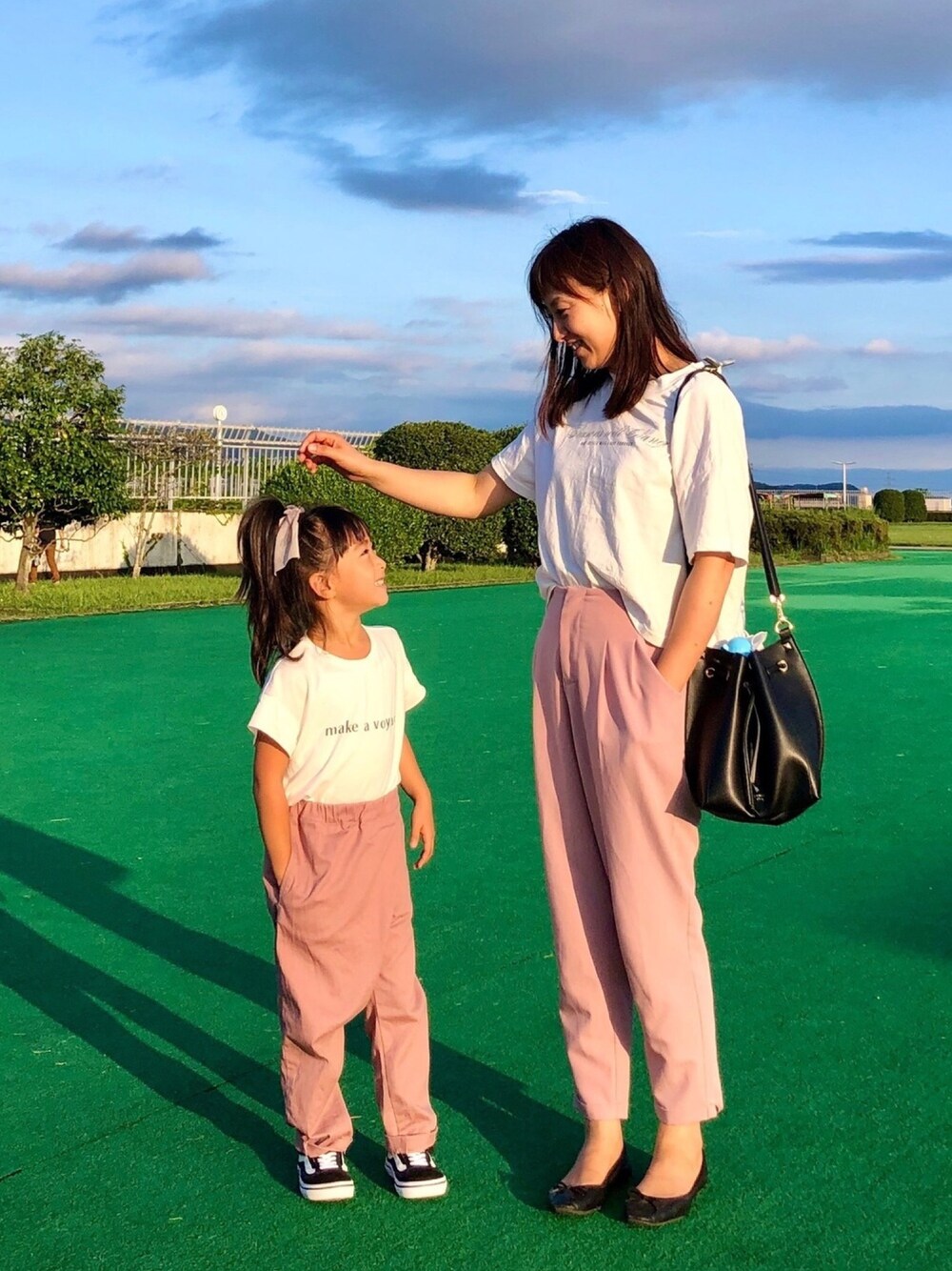 夕暮れ☽・:* ロゴT×ピンクパンツのリンクコーデ︎☺︎︎☺︎ ご覧頂きありがとうございますᵗᑋᵃᐢᵏ ᵞᵒᵘ ¨̮