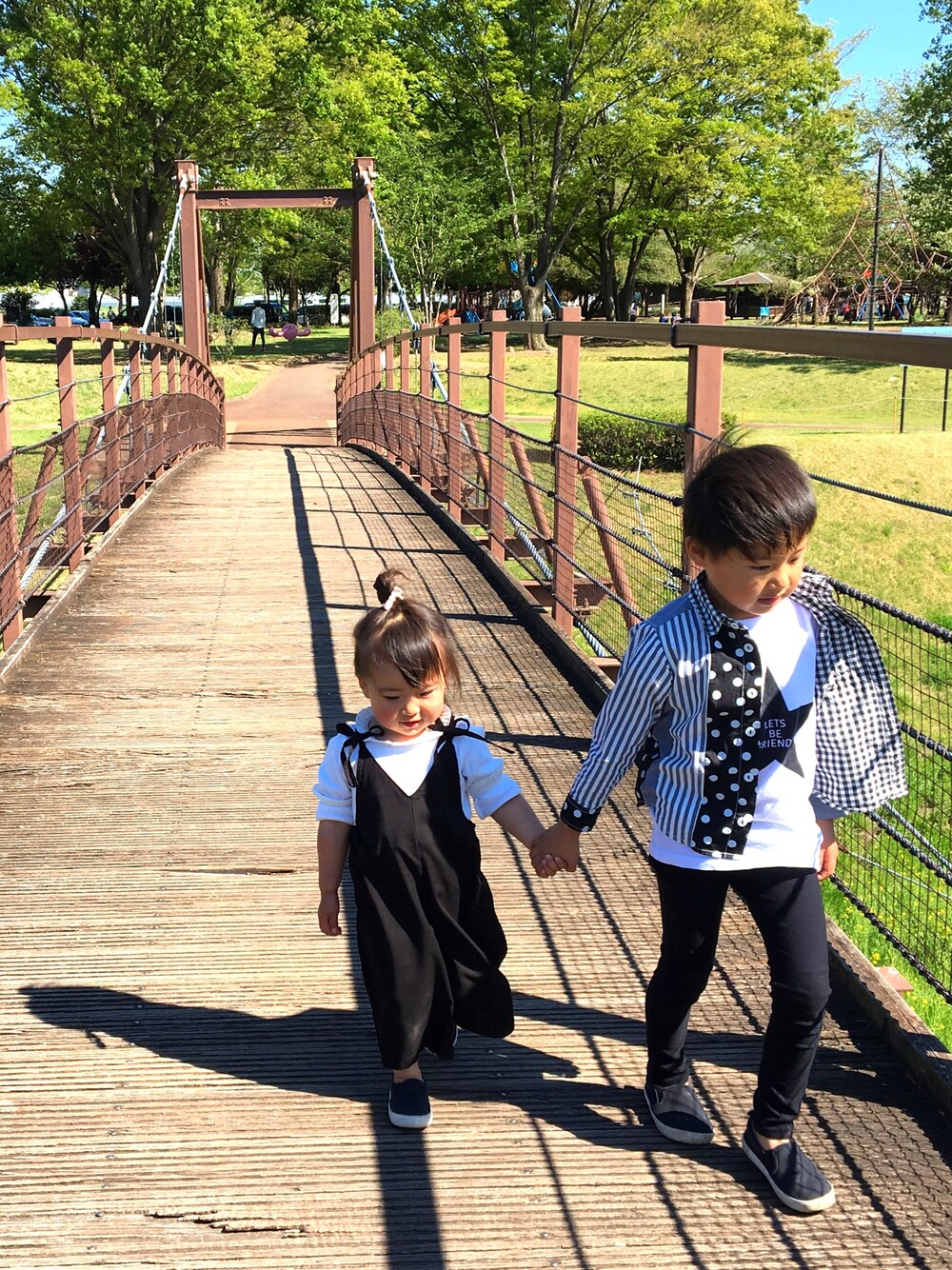 パパが登山で朝3時に出発してしまったので 母子3人で鯉のぼりを見に行った日🎏 (鯉のぼり写ってないけど🙄) 兄妹 モノトーン リンクコーデ🎶