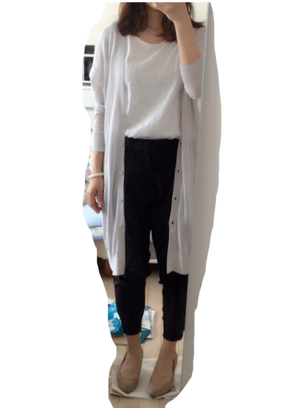 THE・ユニクロっぽいコーデ! ロングカーディガンには、これからいっぱいお世話になりそうです。 いつもスニーカーだし、たまにはパンプス履こうかな〜(^^)という気分で履いてみました。。