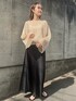 大人気のバイヤスロングスカートとトレンドのメッシュトップスで今年らしいコーディネート◎ベージュ×黒で大人な雰囲気に!